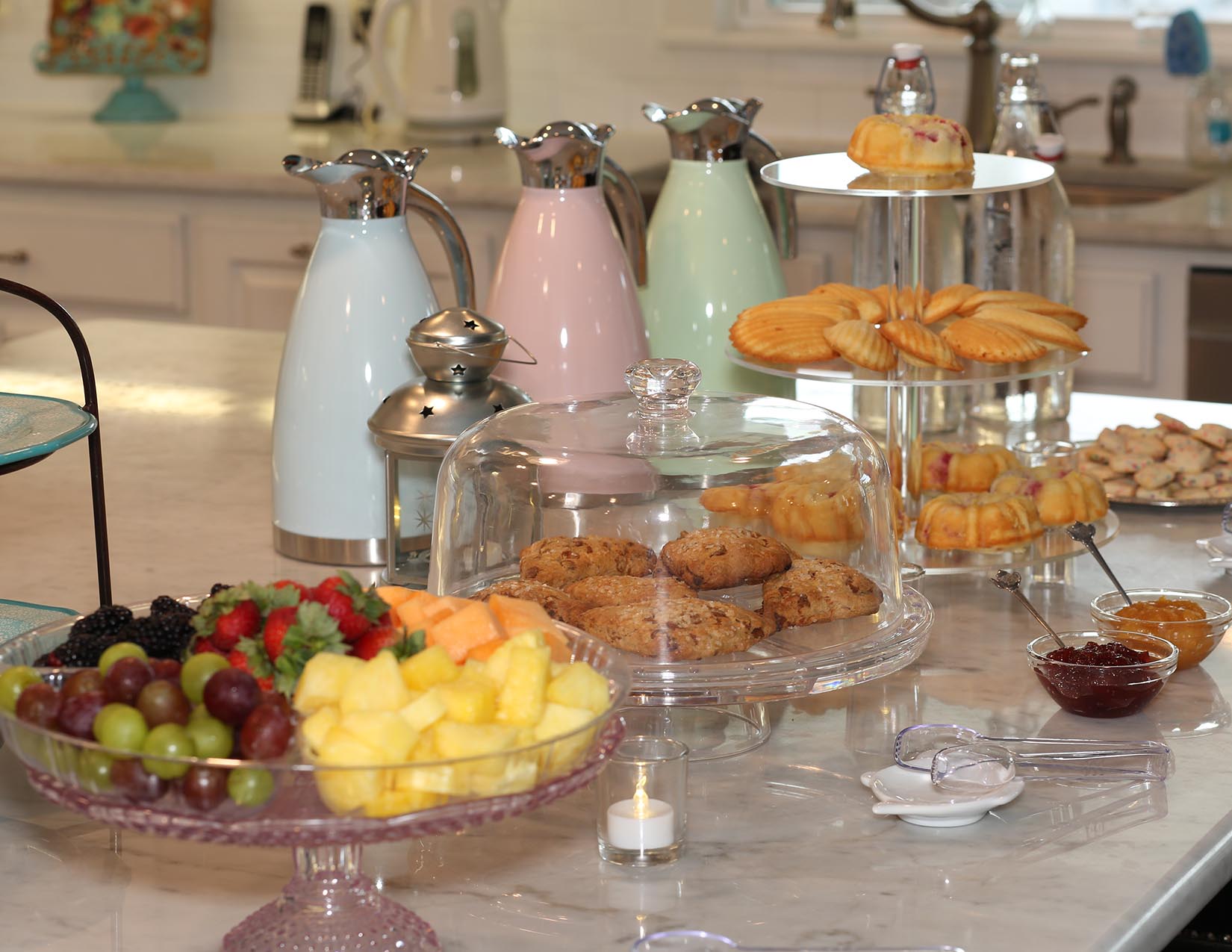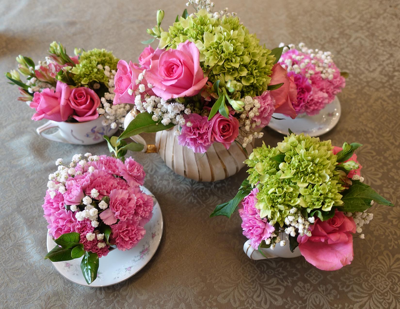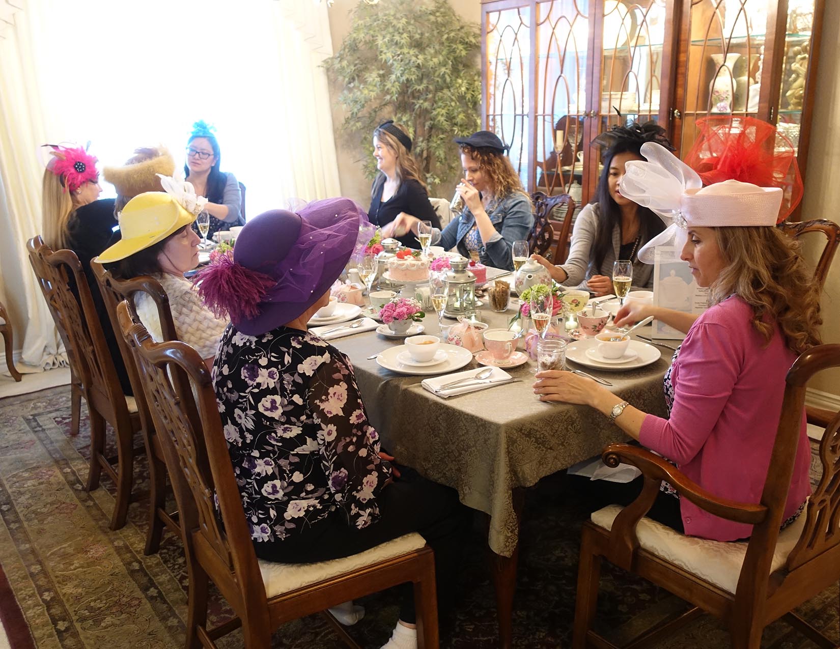 The traveling tearoom that comes to you! You choose the location and guests. I provide everything else – the tea, food, linens, teacups, tableware, silverware, even the soothing music if you like. I will set your table, cater and serve the delicious food, brew and serve the tea, and stay afterwards to do the dishes so you can focus on your guests. I can also host your indoor or outdoor event at my home for a complete pampered experience for you and your guests! Our afternoon tea menu includes delicious finger sandwiches, sweet and savory bites, homemade scones, fresh fruit, fresh-baked pastries, and scrumptious cakes. Food and tea are served using vintage dishes, china, cake stands, towers, and pretty teapots. The Traveling Teapot is available for any occasion – parties, showers, birthdays for little girls, birthdays for girls who are young at heart, get-togethers, hen parties, bridge clubs, gentlemen lunches, business meetings, just because it is a Tuesday, and more!